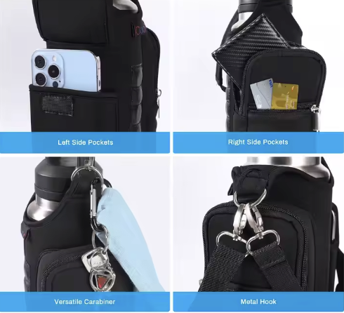 Esto no es solo para llevar el agua, es un centro de organización para tu entrenamiento. Con sus bolsillos integrados, tienes espacio de sobra para el teléfono, las tarjetas y las llaves. Y gracias a su material de neopreno, no solo protege tu botella de golpes, sino que además ayuda a mantener tu bebida fría por más tiempo, para que te refresques de verdad cuando lo necesites.