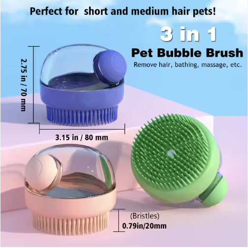 Este cepillo se diseñó pensando exactamente en esa situación. Imagina tener el champú, el cepillo y un masajeador, todo en la palma de tu mano. Es una herramienta que te devuelve el control y la calma. Llenas su depósito con el champú favorito de tu mascota, lo cierras y ya está. Con una ligera presión, el jabón se distribuye uniformemente a través de las cerdas mientras cepillas, permitiéndote usar la otra mano para tranquilizar a tu compañero y asegurarte de que se sienta seguro.