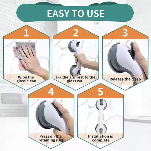 Un resbalón en el baño puede ser un problema muy serio. Pero la solución no debería ser más complicada que el problema. Olvídate de buscar un taladro, de dañar tus azulejos o de pagarle a alguien para una instalación. Esta manija de seguridad se fija en segundos con un potente sistema de ventosas de vacío, dándote un agarre firme y confiable justo donde lo necesitas, cuando lo necesitas.